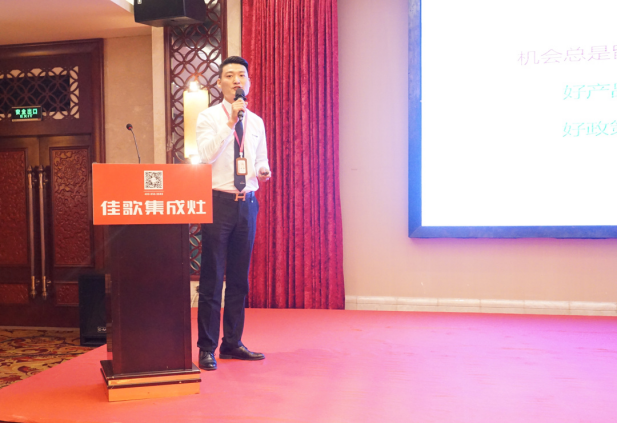 本次會議由銷管部部長魏諜主持,佳歌集成灶總經(jīng)理袁海濱現(xiàn)場致辭,為大家講解了佳歌的品牌優(yōu)勢。佳歌集成灶營銷總經(jīng)理黃忠海就廚電市場與集成灶朝陽產(chǎn)業(yè)進行市場分析及前景預(yù)測,幫助在座來賓了解廚電市場及集成灶行業(yè)發(fā)展趨勢及其潛在利潤空間。