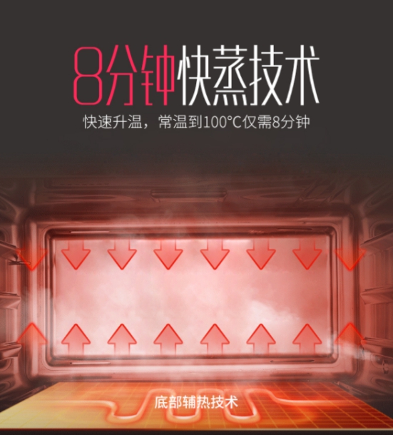 做不到像大廚一樣猛火爆炒,那就展示一下“蒸”功夫。佳歌集成灶蒸箱款68L超大容量,一次滿足8口之家的菜單需求。多種模式可供選擇,快速升溫,常溫100℃只需8分鐘。