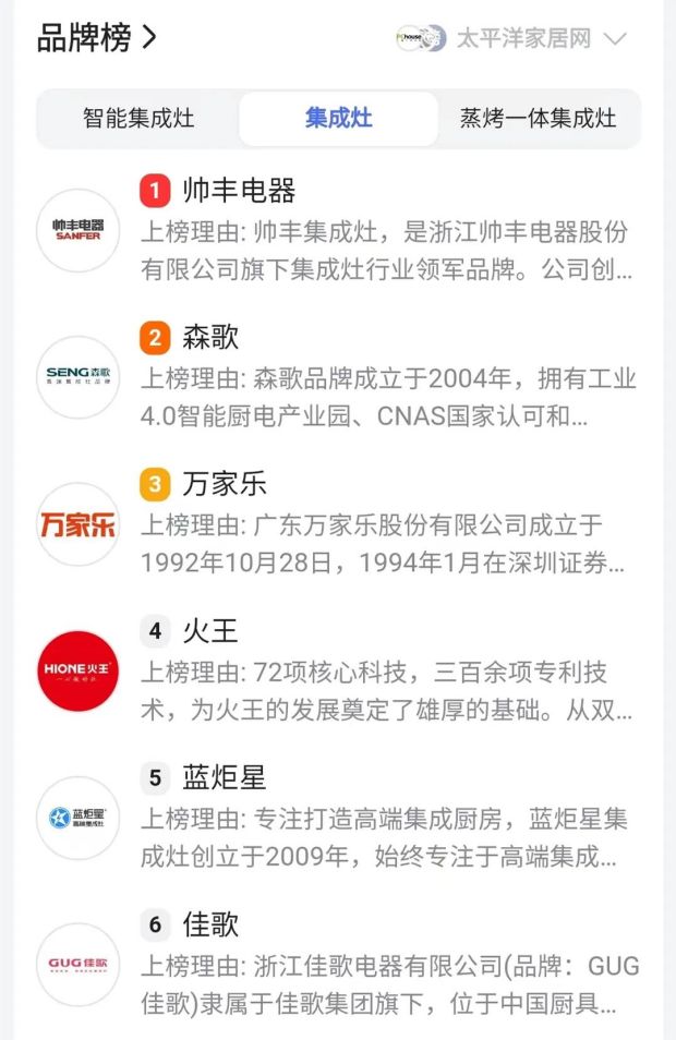 近日,佳歌集成灶榮登蓋得90測評認證NO.6,品牌享譽度再上新臺階。