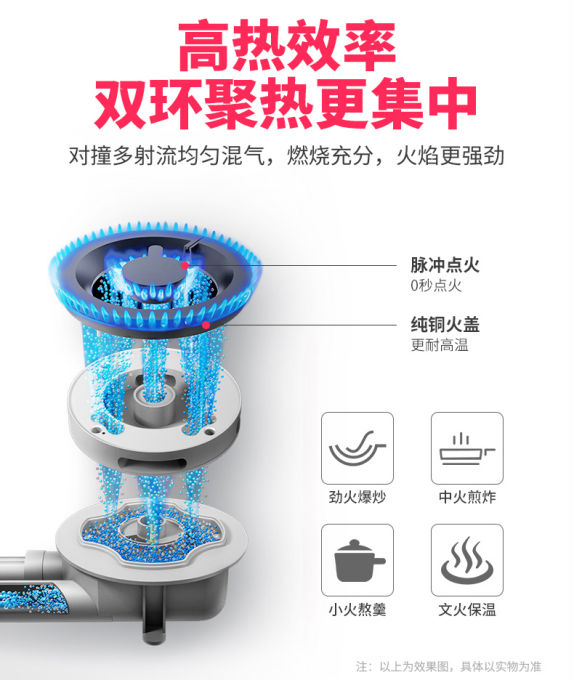 自主研發(fā)設(shè)計雙環(huán)純銅節(jié)能高效燃燒器,額定熱負(fù)荷達(dá)到5.0kW,突破火力臨界點,遠(yuǎn)超國家一級能效標(biāo)準(zhǔn)。