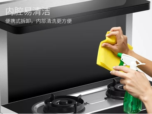 卡扣式可拆卸擋煙板一推一提輕松拿出,再用抹布擦洗不沾油的微晶冷凝板,不僅方便快捷而且清潔范圍廣得多。
